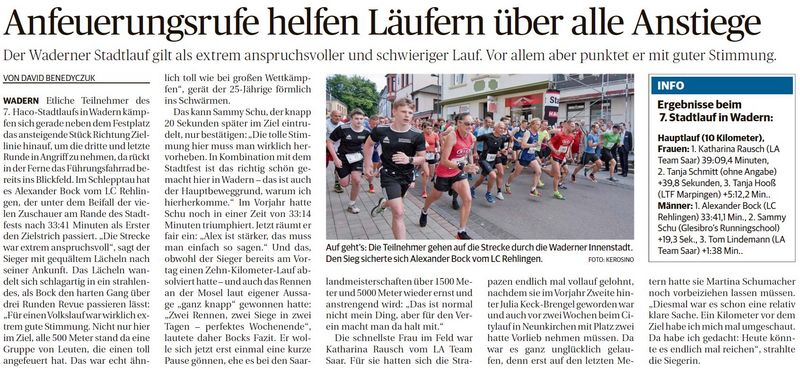 Bericht im Lokalteil St. Wendel der Saarbrücker Zeitung vom 09.06.2018