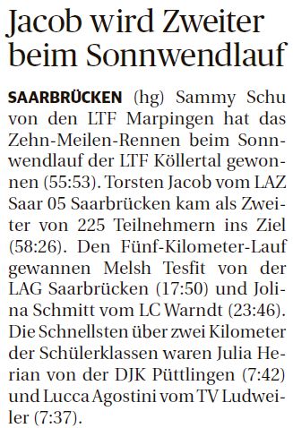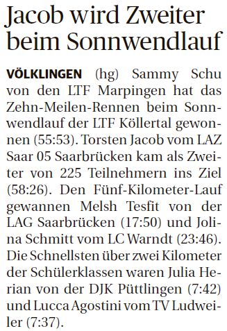 Bericht in den Lokalteilen Saarbrücken/Sulzbachtal und Völklingen/Köllertal der Saarbrücker Zeitung vom 30.06.2018
