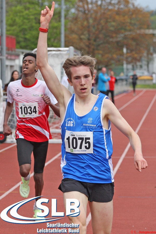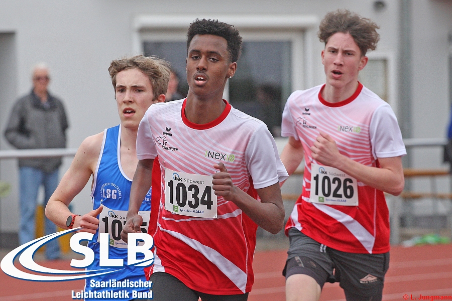 Lange Zeit führte bei der MU18 über 3.000 Meter ein Trio aus Benjamin Stumm (LSG Saarbrücken-Sulzbachtal), Lucca Agostini und dem für Tempo sorgenden Abie Hensgen (beide LC Rehlingen). In der letzten Runde wechselte zwischen Stumm und Hensgen zweimal die Führung, bis schließlich Benjamin Stumm in exzellenten 8:59,95 triumphierte. Auch Abie Hensgen (9:00,65 Min.) und Lucca Agostini (9:11,33 Min.) verbesserten sich erheblich. Alle drei gehören derzeit zu den Top 10 in Deutschland, Stumm ist sogar Zweiter. Siegerin der WU20 über 3.000 Meter wurde Eleni Sofie Markatos (ATSV Saarbrücken) in 10:58,40 Minuten. Bei der WU18 war Emely Krieger mit 10:39,37 Minuten und persönlicher Bestzeit erfolgreich.